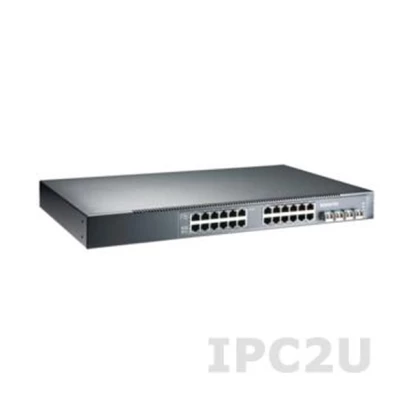 1U Rackmount Industrial Layer 3 Stackable Managed Gigabit Ethernet Switch with 4x1000Base-TX / 1000Base-FX (SFP Sockets) Combo Ports, 24x10/100/1000Base-TX, 2x10G CX4 Screw Type Stacking Connector, 36..60V DC-In