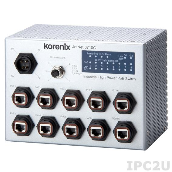 Korenix Industrial Managed 8x10/100Base-TX PoE Ethernet (Rugged RJ45 Connectors) Switch with 2x1000Base-TX Ports (Rugged RJ45 Connector)