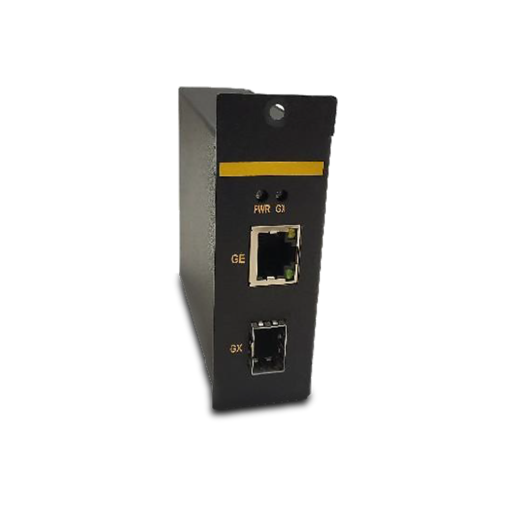 2-port Ethernet to optical media converter (mounting in KOM-RH, KOM-DH chassis), 1x1000Base-X SFP ports, 1x10/100/1000Base-T(X) RJ45, 12VDC, -10...+60C
