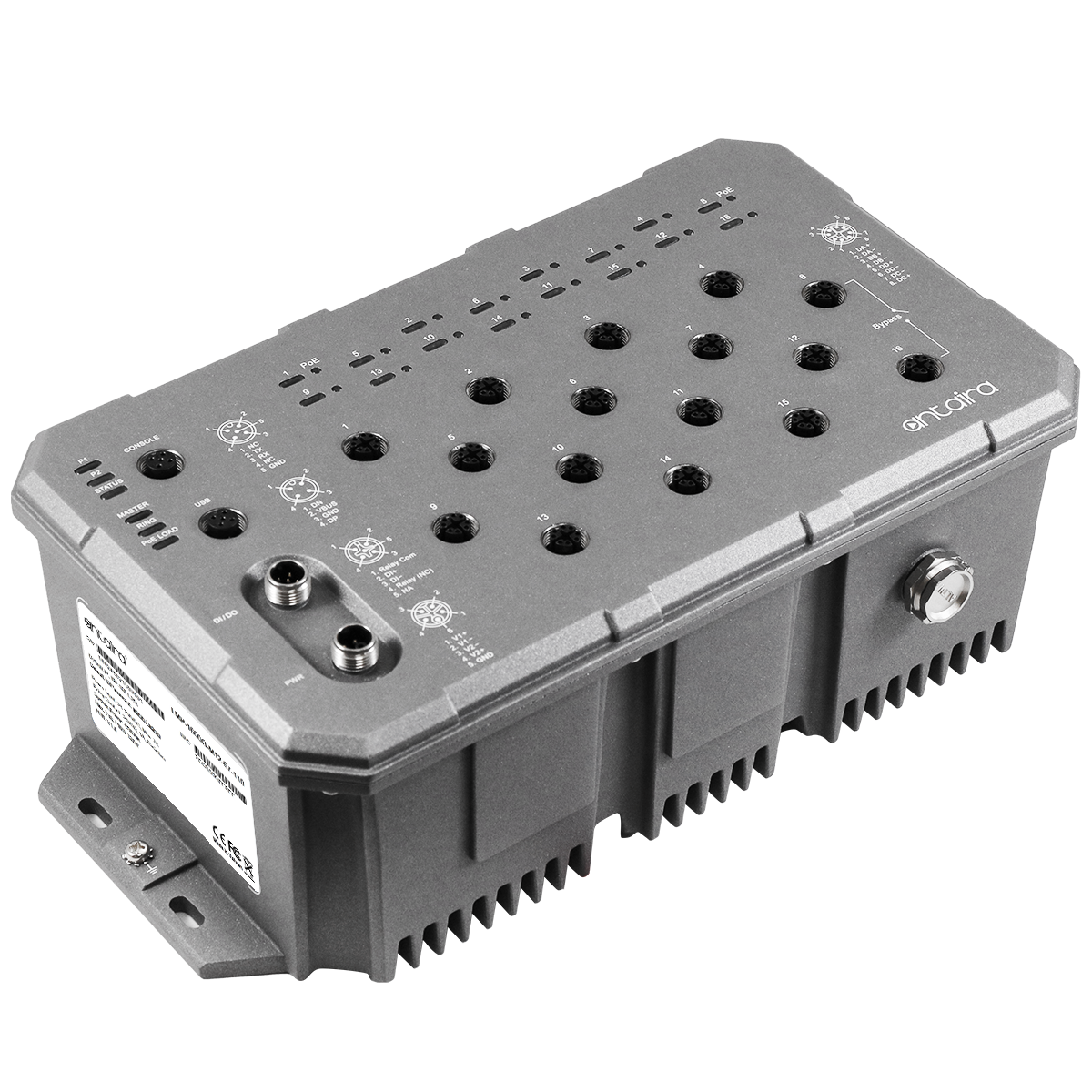 Industrial Layer 3 Managed Ethernet Switch, IP67, 16x10/100/1000Base-TX M12 with PoE, 1xUSB, 1xDI, Power Input 24..110 VDC, Operating Temperature -10..65 C