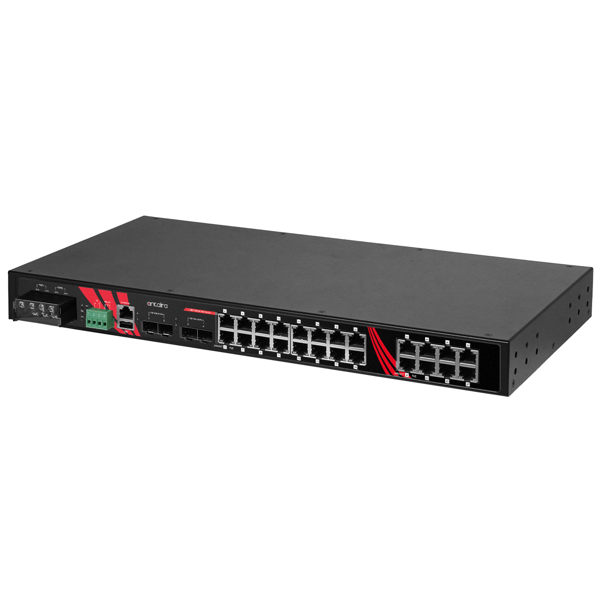 Industrial Managed PoE+ Ethernet Switch, IP30, 28x10/100/1000Base-TX with 24xPoE+, 4x1G/2.5G/10G SFP+, Power Input 48..55 VDC, Operating Temperature -10..65 C