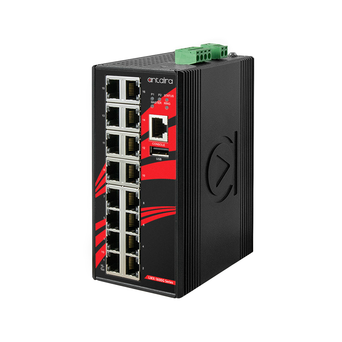 Industrial Layer 3 Managed Ethernet Switch, IP30, 16x10/100/1000Base-TX, 1xUSB, Power Input 12..48 VDC, Operating Temperature -40..75 C