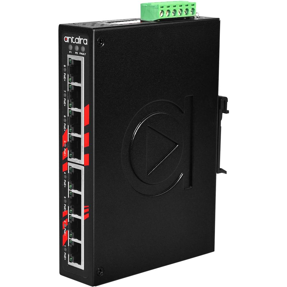 Industrial PoE+ Unmanaged Ethernet Switch, IP30, 8x10/100Base-TX with PoE+, 48..55VDC, Operating Temperature -10..70 C
