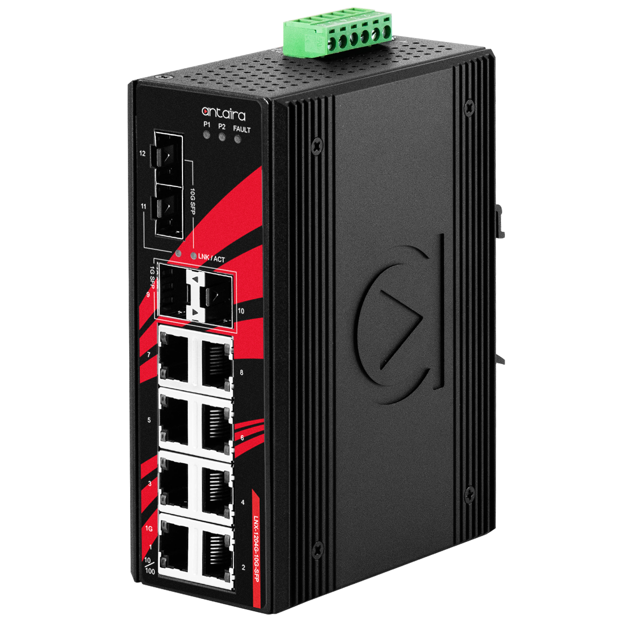 Industrial Unmanaged Ethernet Switch, IP30, 8x10/100/1000Base-TX, 2x100/1000 SFP, 2x10G SFP+, 12..48VDC, Operating Temperature -10..70 C