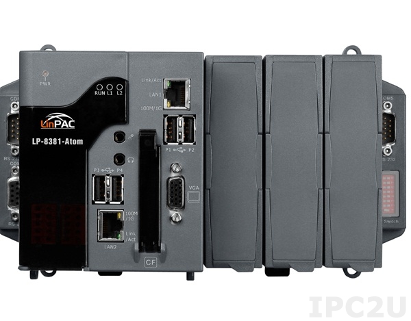 PC-compatible Industrial Controller Intel Atom Z520 1.33 GHz, 8Gb Flash, 1Gb DDR2 SRAM, VGA, 4xUSB, 2xRS-232, 1xRS-485, 1xRS-232/485, 2xEthernet, Linux 2.6.33, with 3 Expansion Slots