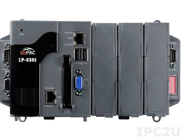 PC-compatible AMD LX800 500MHz Industrial Controller, 4Gb Flash, 1 Gb SRAM, 2xRS-232, 1xRS-485, 1xRS-232/485, 2xUSB, Ethernet, Linux 2.6.18, with 3 Expansion Slots