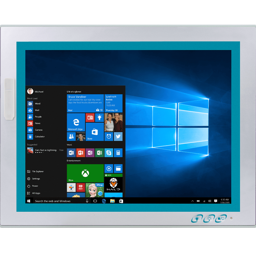 15" Fanless Panel PC, 1024x768, 350cd/m2, Resistive Touch, Intel Atom x7433RE CPU, 8GB (Up to 16GB) DDR5 RAM, DP, 2x2.5GbE LAN, 4xCOM, 2xUSB 3.2, 3x2.0, 1x2.5" Drive Bay, 1xM.2 Key-M (SATA), 1xM.2 Key-B, 1xM.2 Key-E, Audio Opt., 9-36VDC-in