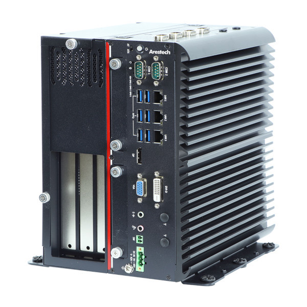 High-Performance Machine Vision GPU Computer, Intel 8th/9th Gen Core i3/i5/i7 CPU, VGA, DVI-D, DP, 3xGbit LAN, 8xUSB, 6xRS232/422/485, 2xmSATA, 4x2.5" SATA Bay, 3xPCI, 9..48VDC, -40..70C operating temp