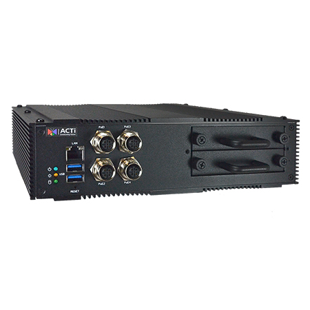 4-Channel 2-Bay Transportation Standalone NVR, H.265/H.264/MJPEG, 300 Mbps, 2 SATA HDD (max. 2Tb), 2xRJ-45, PoE: 4xM12, -20...60C, EN50155