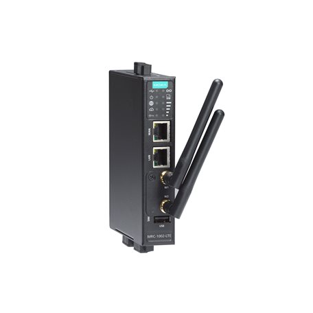 Moxa Remote Connect gateway with 1 LTE cellular port and 2 Ethernet ports, -10 to 60C operating temperature