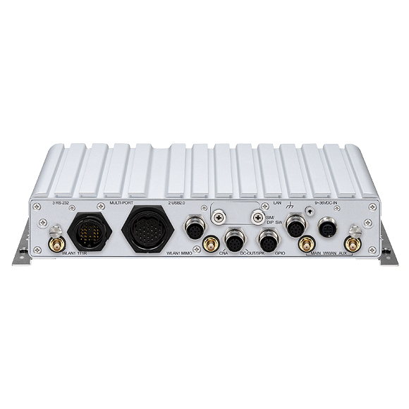 Full IP65 Rugged In-Vehicle Embedded box pc wth Intel Atom E3950 2.0 GHz, 4GB DDR3L, VGA, 2xGbE, 5xCOM, 2xUSB 2.0, 4xPCIe, 1x2.5" SSD Drive bay, CFast, 1xCAN Bus, 2xSIM slots, 1xGPS, 9-36V DC-In