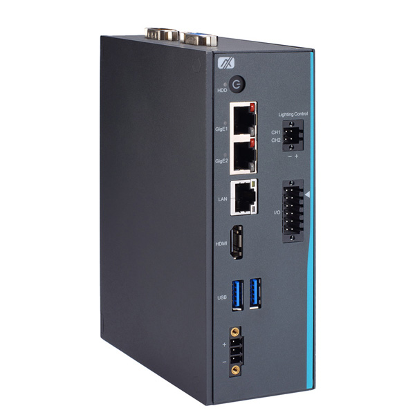 Fanless Vision System with Intel Atom x5-E3940 CPU, 1xDDR3L SO-DIMM up to 8GB, HDMI, VGA, 2xIEEE802.3at PoE GbE LAN, 1xGbE LAN, Vision I/O (4CH trigger IO, 4CH DIO, 2CH lighting ctrl), 1xCOM, 2xUSB3.2, 2x2.5" SATA, 1xmPCIe (mSATA), 24VDC-in