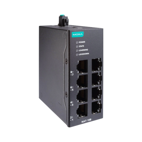 Industrial Network Address Translation (NAT) device, 8x10/100Base-TX RJ45, 1xUSB, 12/24/48VDC-in, Operating Temperature -10...60C