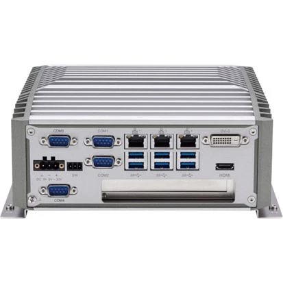 Fanless Box-PC NISE3900E, Support 9/8th Gen Intel Core i7/i5/i3 CPUs, Intel Q370 Chipset, up to 32GB DDR4, DP, DVI-D, HDMI, 3xGbit LAN, 4xUSB 2.0, 6xUSB 3.1, 4xCOM, Audio, 2.5" SATA HDD Bay, M.2, 1xMini-PCIe, 1xPCIe x4, 9...30V DC-In