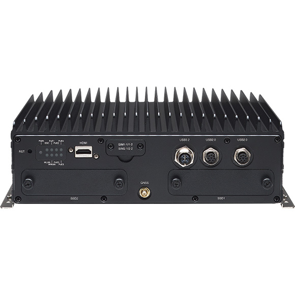 Fanless Railway PC, IP67, Intel Core Ultra 5 125H CPU, Up to 64GB DDR5 RAM, HDMI, 8xM12 (5x2.5GbE PoE LAN, 1xUSB 3.2, 4xUSB 2.0), 3xMultiport for 4xCOM/2xCAN/DIO/Audio, GPS, 2x2.5" Bay, 1xM.2 Key-M, 1xM.2 Key-B, 1xM.2 Key-E, 2xMiniPCIe, 9-36/24VDC-in