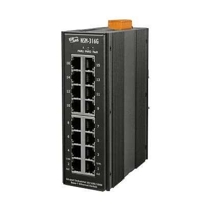 Unmanaged Industrial Smart Ethernet Switch with 16 10/100/1000 Base-T(X) Ports, IP30