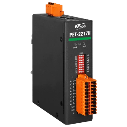 Ethernet I/O Module, 32-bit ARM, 2x10/100Base-TX RJ-45 with PoE, 8xAI, 10..48 VDC, Operating Temperature -25..75C