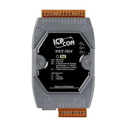 Ethernet I/O Module with 4-channels AO, 5-channels DI and 5-channels DO (RoHS), PoE