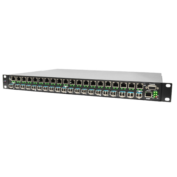Managed High Density Fiber Media Converter Concentrator with 20x 100/1000 Base-T to 20x 100/1000 Base-X SFP ports, Redundunt Dual 18-72VDC Input Power, 0.. 50C Operating Temperature