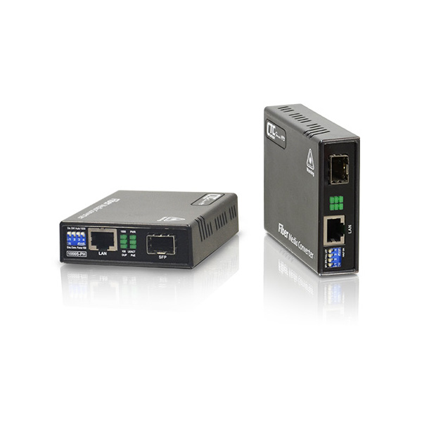 Media Converter 10/100/1000BASE-T to 100/1000BASE-X SFP with PoE+, 48..57V DC, 0..50 C