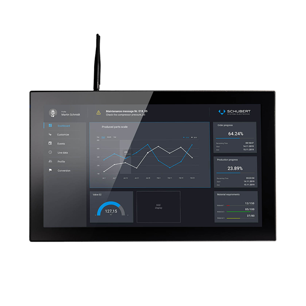 Prime Panel Performance 21.5" Anbau, IP65 Full, 1920x1080, 350cd/m2, PCAP Touch, Intel Celeron G4900T CPU, Up to 64GB DDR4 RAM, 2xDP, 1xDVI-D, 2xGbE LAN, 4xUSB 3.2, 4xUSB 2.0, 2xCOM, 1x2.5" Bay, 1xM.2 Key-M, CFast, MiniPCIe, 1xPCIe x16, 18-26VDC-in