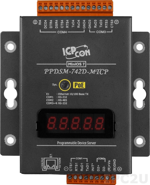 Programmable Device Server with PoE, Modbus Gateway, 3 RS-232 ports, 1 RS-485 port and an LED Display with Metal Case