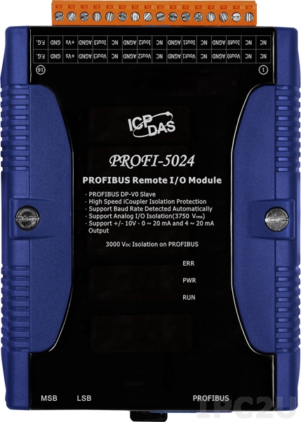 PROFIBUS Remote I/O unit, 4-Ch Isolated Analog Voltage & Current Output