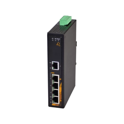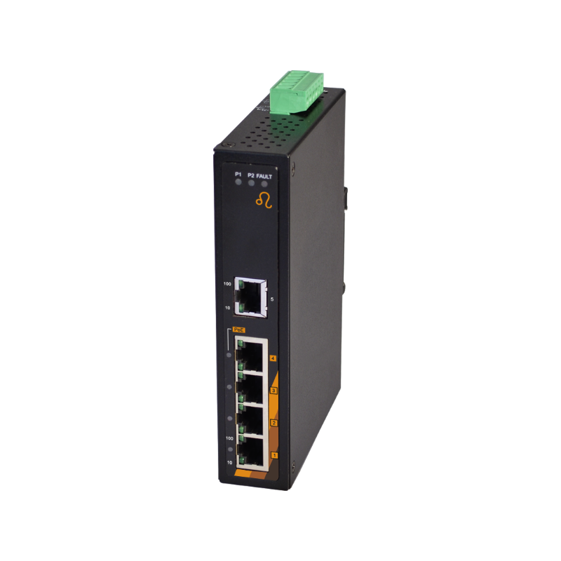 Industrial Ethernet Switch, IP30, 5x10/100Base-TX with 4xPoE+, Dual 48..58VDC, Operating Temperature -10..65 C