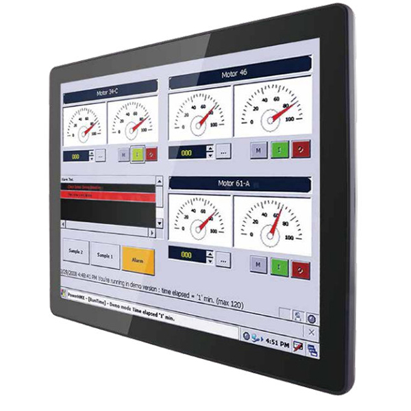 Industrial 15" display, 1024x768, 250 nits, projected capacitive touch (USB), VGA, HDMI, power adapter