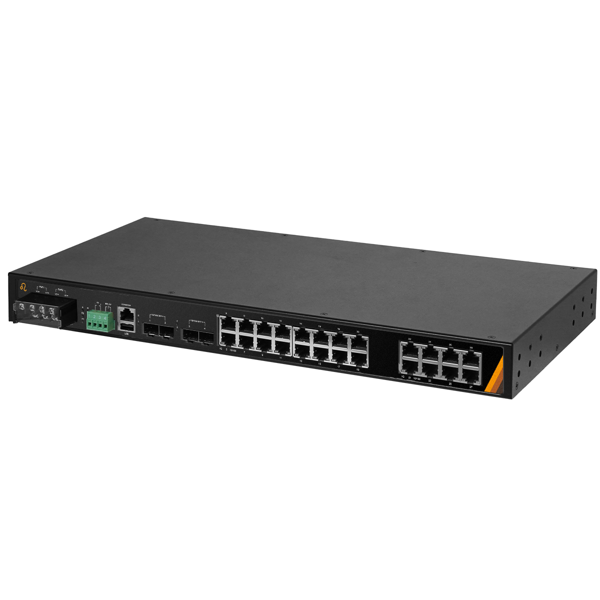 Industrial Rack-Mount Managed Gigabit Ethernet Switch, IP30, 24x10/100/1000Base-T, 4x1G/2.5G/10GbE SFP+, 1xCOM, Dual 12..48VDC, Operating Temperature -10..65 C