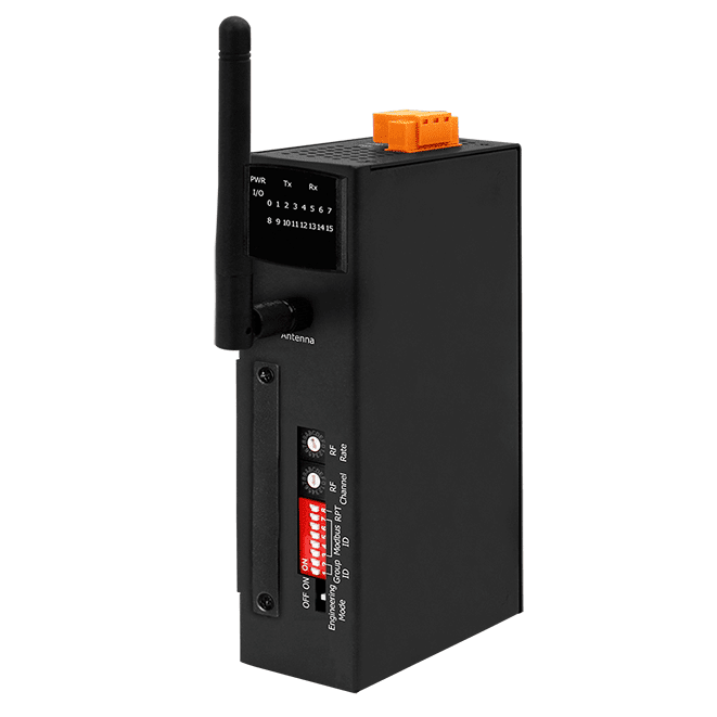 RF Wireless I/O Module, 433 MHz, Baud Rate 650..57600 bps, 16 Channels, Modbus RTU, 10..30 VDC, Operating Temperature 25..75 C