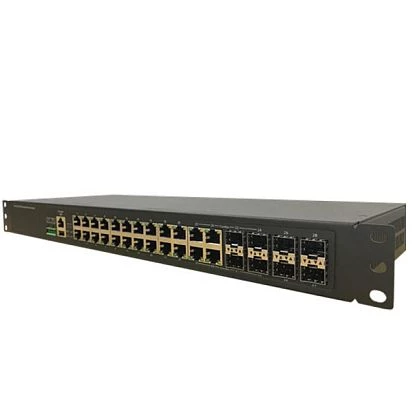 Industrial Rackmount Ethernet Switch, 20x10/100/1000Base-T, 4x100/1000M SFP, 4x100/1000M RJ45/SFP Combo, 1xDB9, 1xUSB, 1xDI, 1xDO, L2 Managed, ERPS v2, 18..72VDC, -40..70 C