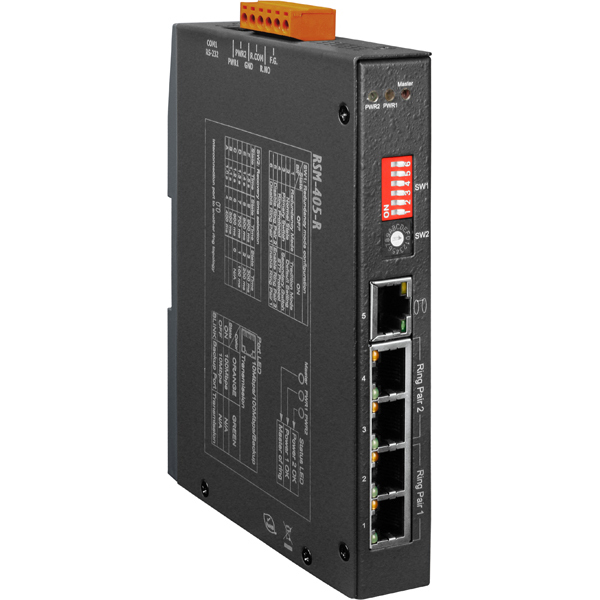 5-Port Real-time Redundant Ring Switch with metal case (RoHS) (+12 ~ +48 VDC, non-isolation)