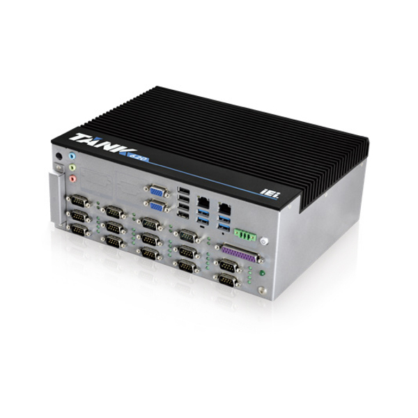Fanless Embedded Computer with Intel Skylake Celeron 3855U, 4Gb RAM, Up to 32GB DDR4, 1x 2.5" SATA HDD/SDD, 2xGbE RJ45, 8xUSB, 6xRS232, 8xRS232/422/485, 24-bit DI/O, 2xVGA, Audio, 9-36V DC, -30..+70C Operation Temperature