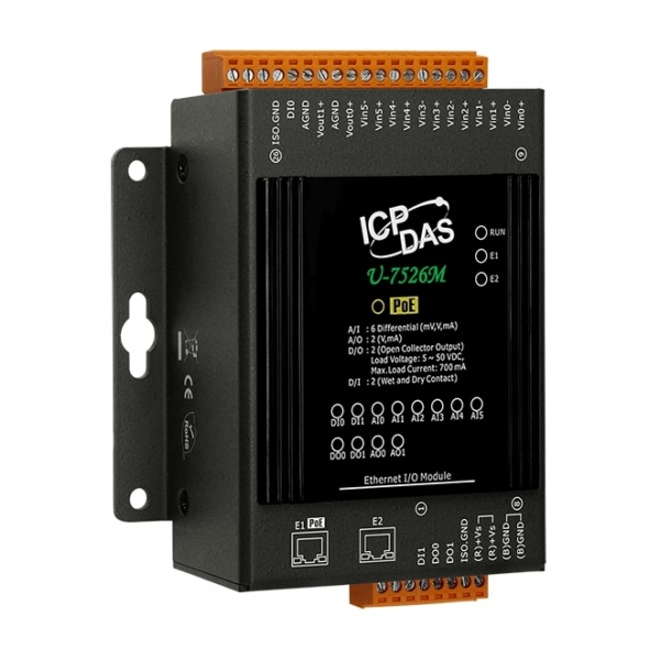 OPC UA I/O Module with 2-ch DI, 2-ch DO, 6-ch AI, 2-ch AO, and 2-port Ethernet Switch (RoHS)