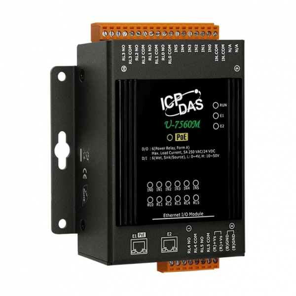 OPC UA I/O Module with 6-ch DI, 6-ch Relay 5 A @ 250 VAC/24 VDC, and 2-port Ethernet Switch (RoHS)