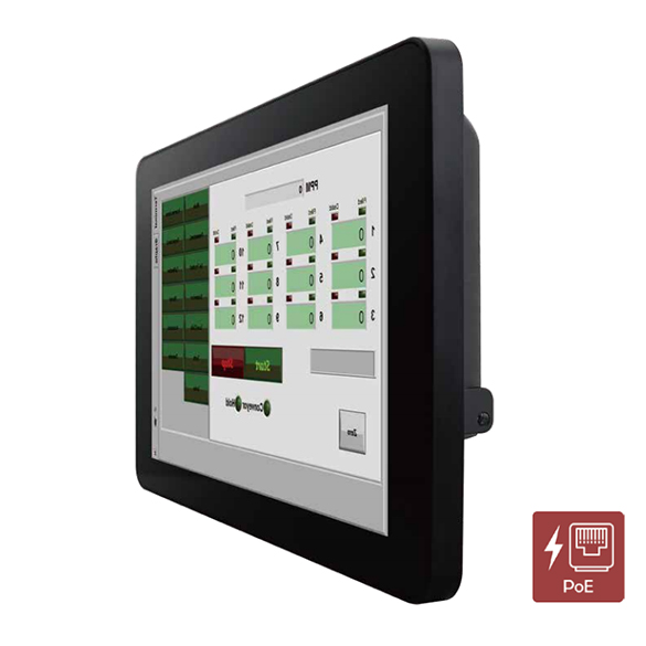 10.1" Projective Capacitive Multi-Touch monitor, 1024x600, 420 cd/m2, VGA+HDMI, PoE input, IP65 Front