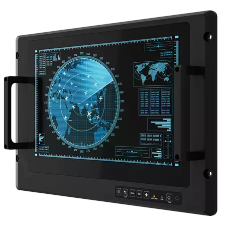 15.6" Military Display, MIL-STD-810H/461G Certification, 3840 x 2160, 500 cd/m2, PCAP Touch, DP, DVI, VGA, 2xHDMI Opt., Optional: (USB, COM, Audio), 100-240VAC-in (9-36VDC-in Optional)
