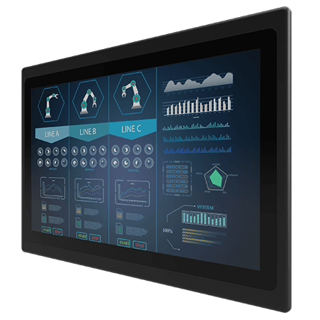 21.5" Panel Mount Display, IP65 front, 1920x1080, 1000cd/m2, PCAP Touch (USB), VGA, HDMI/DVI/Audio Optional, 12VDC-in with Power Adapter