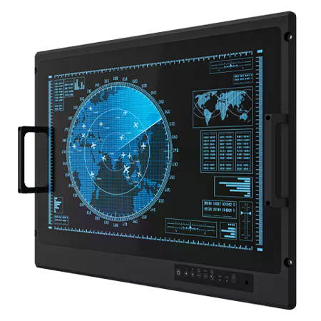 23.8" Military Display, MIL-STD-810H/461G Certification, 3840 x 2160, 540 cd/m2, PCAP Touch, DP, DVI, VGA, 2xHDMI Opt., Optional: (USB, COM, Audio), 100-240VAC-in (9-36VDC-in Optional)