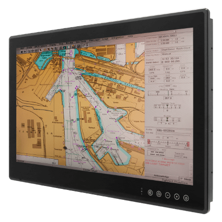 24" Marine Display, IP66 Front, 1920x1080, 300cd/m2, PCAP touch (with AR Coating), HDMI, DVI-D, VGA, 1xUSB for touch, 1xCOM, 9-36VDC-in, IEC60945 4th, IACS E10, DNV-CG-0339, (Optional Color calibrated for ECDIS compliance)