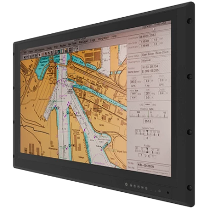 32" Marine Panel Display, IP65 Front, 1920x1080, 400cd/m2, PCAP Touch, VGA, DVI-D, HDMI, 1xUSB for touch, 1xCOM, 9-36VDC-in, IEC 60945 4th, IACS-E10, DNV-CG-0339, (Optional Color calibrated for ECDIS compliance)
