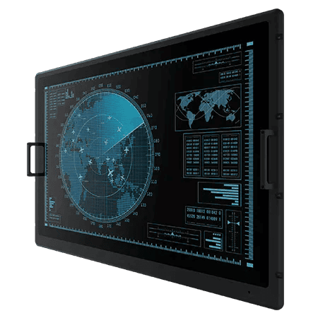 42.5" Military Display, MIL-STD-810H/461G Certification, 3840 x 2160, 350 cd/m2, PCAP Touch, DP, DVI, VGA, 2xHDMI Opt., Optional: (USB, COM, Audio), 100-240VAC-in (9-36VDC-in Optional)