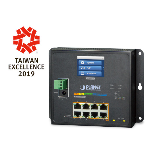 Industrial Managed L2+/L4 Power-over-Ethernet Switch with 8x1000 802.3af/at, 2x1000X SFP, LCD Touchscreen, Modbus TCP, ONVIF, SNMPv3, 802.1Q, Dual 48-56VDC In, -20..70C Operating Temperature