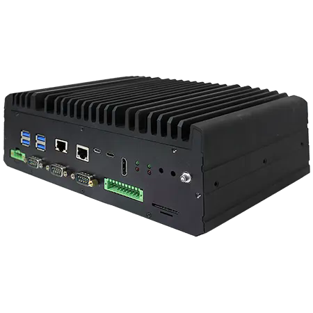 Fanless Edge AI System, Nvidia Jetson AGX Orin 12-core SoC, Nvidia Ampere GPU, 64GB LPDDR5 RAM, 64GB eMMC, HDMI, 1x10GbE LAN, 1xGbE LAN, 4xGbE PoE LAN, 4xUSB 3.2, 1xUSB-C, MicroSD, 2xCOM, 16-bit DIO, 2xM.2 Key-M, 1xM.2 Key-B, 1xM.2 Key-E, 9-36VAC-in