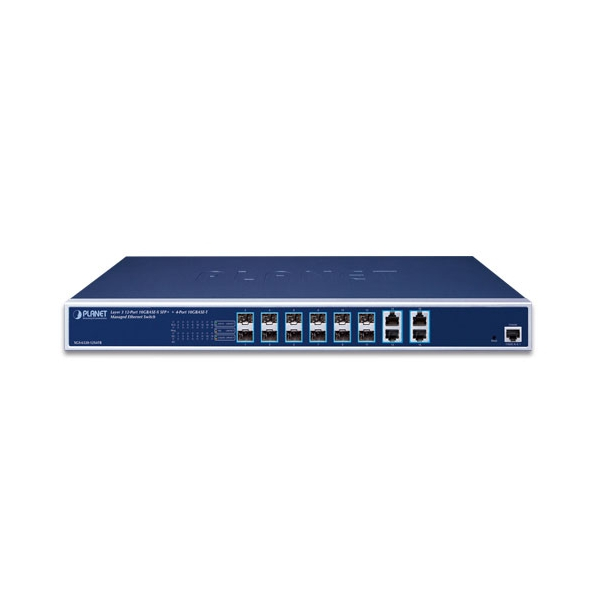 Layer 3 Managed Switch with 4x10GBASE-T RJ45, 12x10GBASE-SR/LR SFP+, Console, Redundant 100..240V AC/36..60V DC, 0..50 Operating temp.
