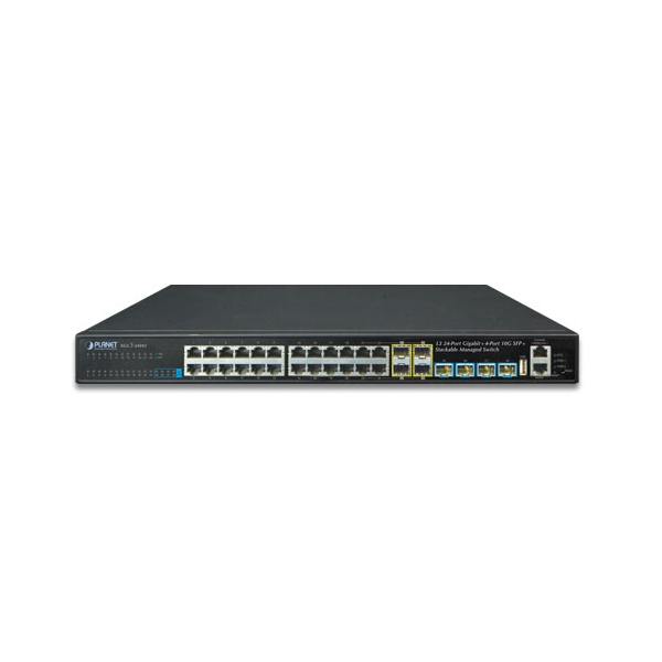 Layer 3 Stackable Managed Switch with 24x10/100/1000BASE-T, 4x100/1000BASE-X SFP, 4x10GBASE-SR/LR SFP+, Console, 100..240V AC, 0..50 Operating temp.