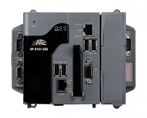 PC-compatible Industrial Controller, x86 1GHz CPU, 2GB DDR3, 32GB Flash, 2xRS-232, 1xRS-485, 1xRS-232/485, VGA, 2xEthernet, Windows CE6, with 1 Expansion Slot