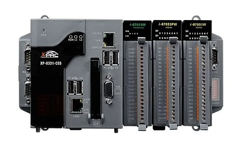 PC-compatible Industrial Controller, x86 1GHz CPU, 2GB DDR3, 32GB Flash, 2xRS-232, 1xRS-485, 1xRS-232/485, VGA, 2xEthernet, Windows CE6, with 3 Expansion Slots
