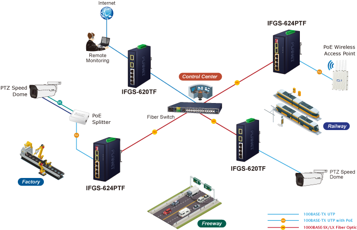 PLANET Technology’s IFGS series of unmanaged Ethernet switches—comprising the IFGS-624PTF , IFGS-620TF , and IFGS-1222TF — are engineered for demanding industrial applications. Designed to operate in harsh environments, they offer outstanding reliability, power efficiency, and robust connectivity for mission-critical systems in automation, transport, surveillance, and smart infrastructure.
